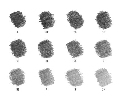 • Diametro mina: 12B: circa 4,5 mm; 11B-6B: circa 3,6 mm; 5B-3B: circa 2,5 mm; 2B-10H: circa 2,0 mm